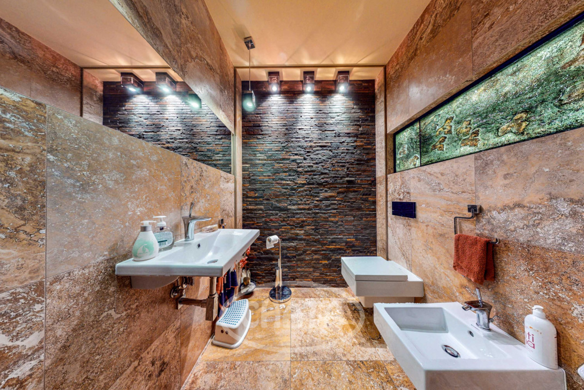 Dla gości do dyspozycji jest osobny apartament z niezależnym wejściem.Na piętro prowadzi klatka schodowa wykończona ręcznie wykutymi balustradami, gdzie znajduje się prywatna część domu. Każda z trzech sypialni posiada swoją łazienkę, a w dwóch dodatkowo znajdują się obszerne garderoby.
