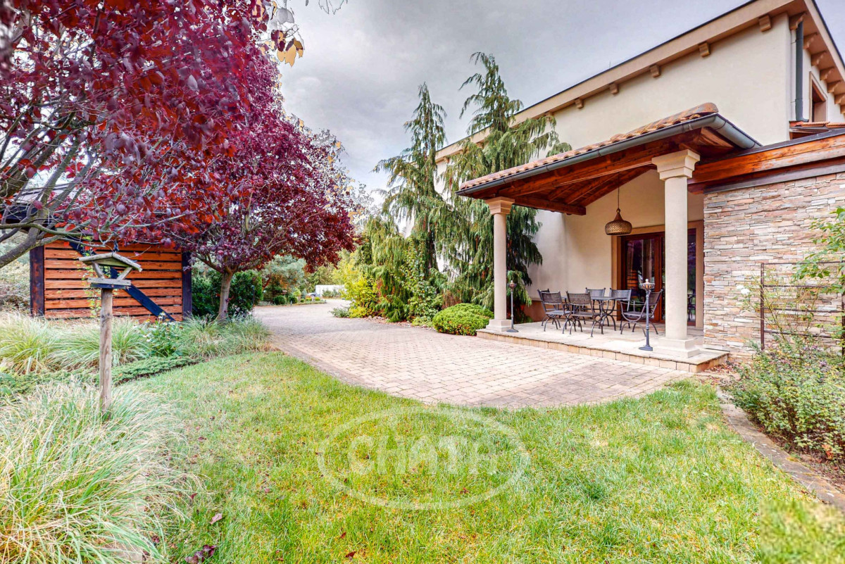 Dom w stylu śródziemnomorskim. Usytuowana na dużej i pięknie zagospodarowanej działce, w cichej i spokojnej lokalizacji, na skraju lasu.