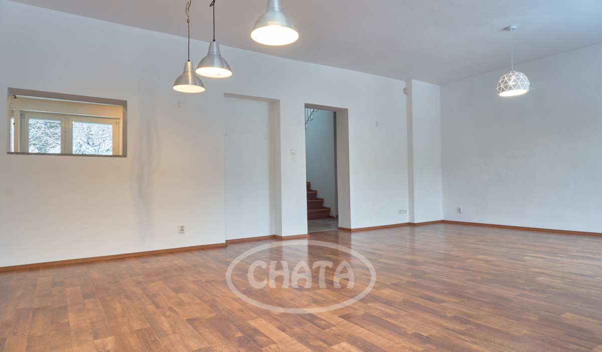 Parter: duży salon, umeblowana i wyposażona kuchnia z tarasem z którego jest wyjście do ogródka, łazienka z wc - kabina natryskowa.