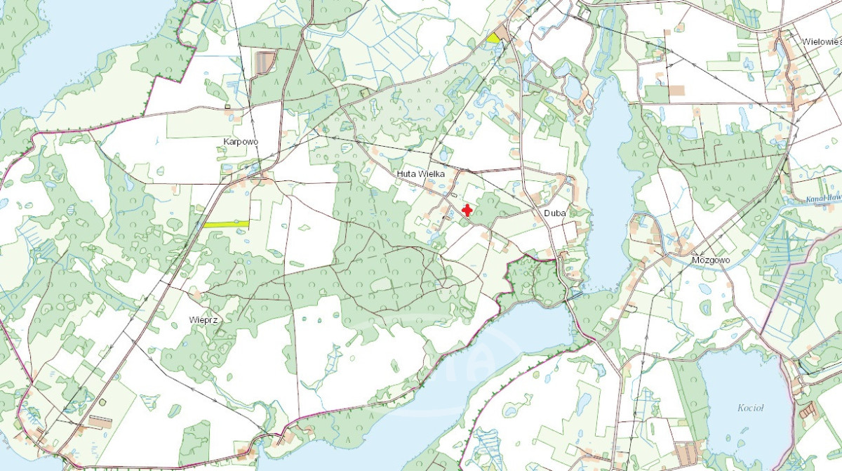 Działka położona ok.800 m od pięknego jeziora Jeziorak, 1km. od jeziora Duby.
