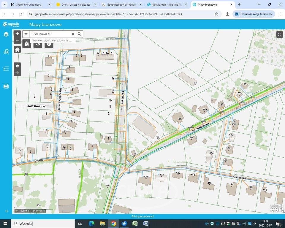 Działka objęta jest miejscowym planem zagospodarowania przestrzennego obszaru zawartego między ulicami Piołunową a Osiniecką, obręb Jerzmanowo we Wrocławiu