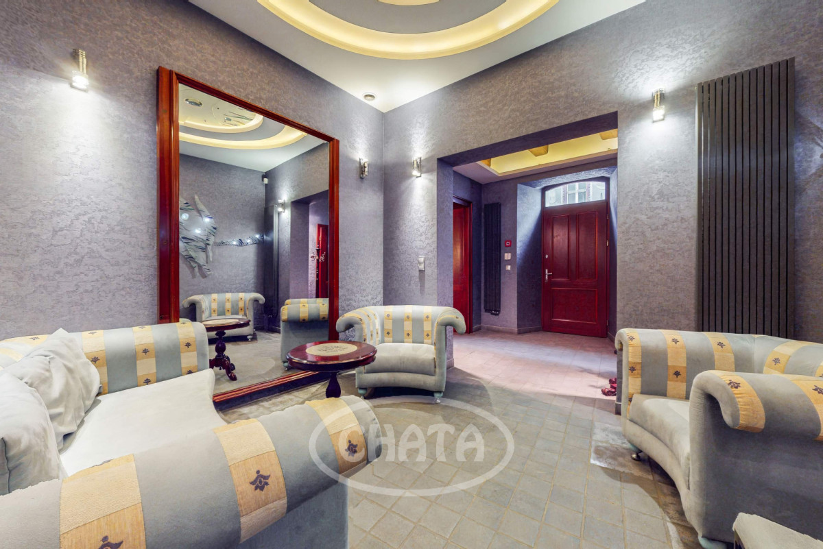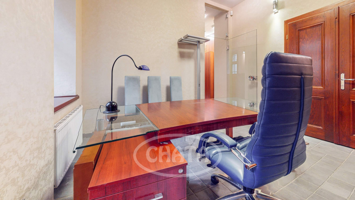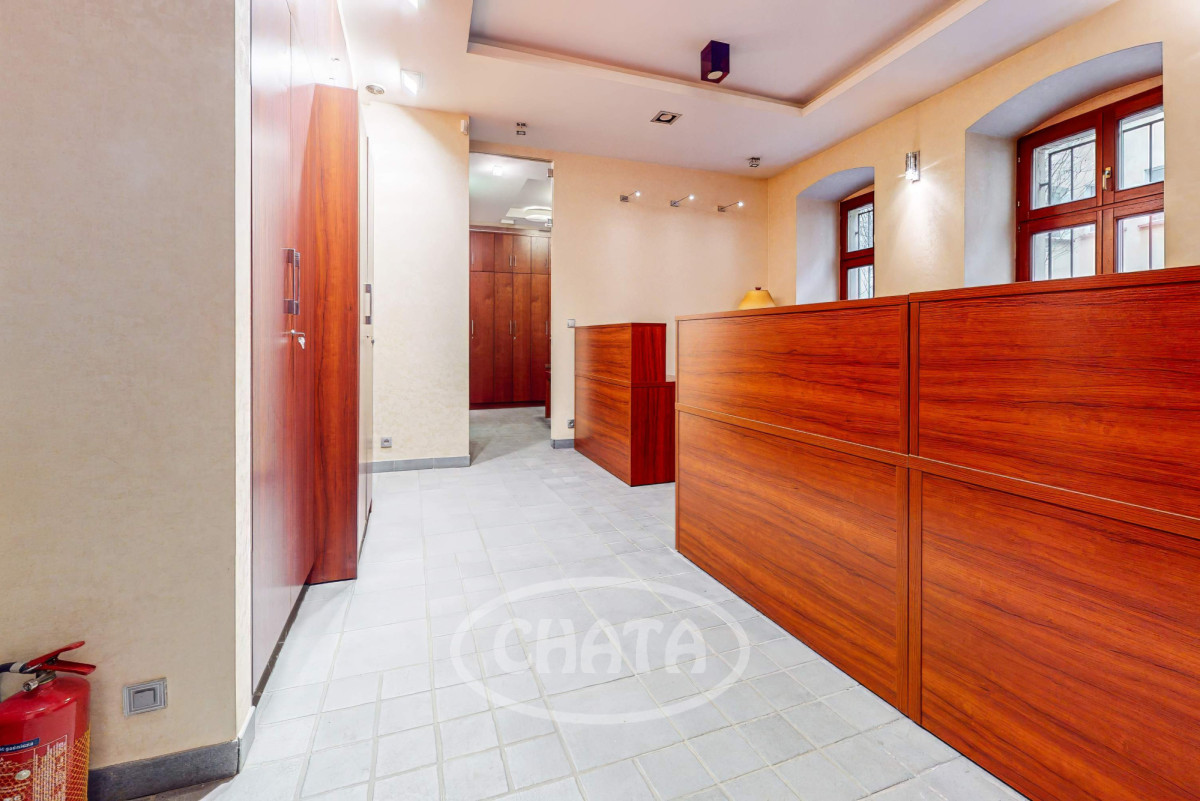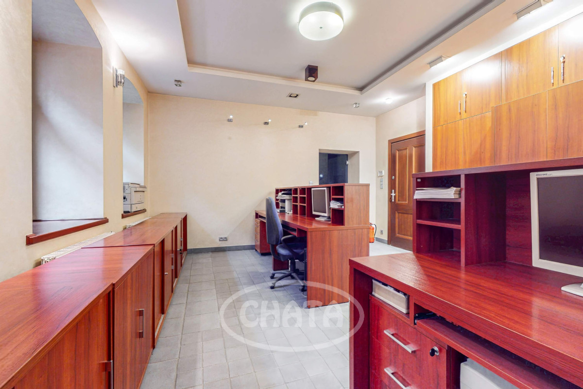Na wprost od wejścia znajduje się hol z którego mamy dostęp do 2 wyodrębnionych toalet, aneksu kuchennego oraz 2 pomieszczeń biurowych, do których prowadzą dodatkowe drzwi wejściowe z patio.