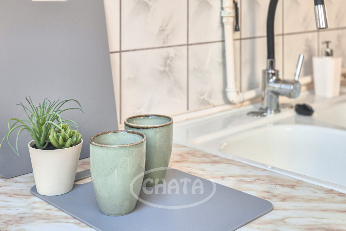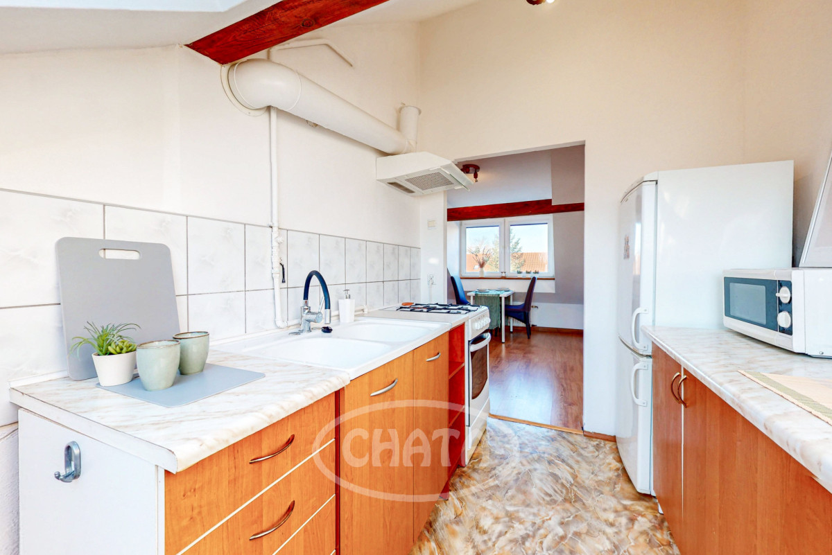 - oddzielna kuchnia z meblami, lodówką i kuchenką gazową.