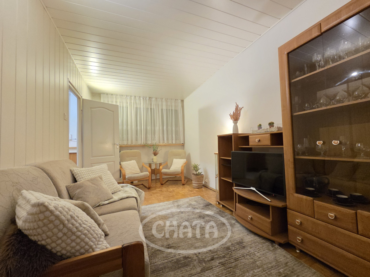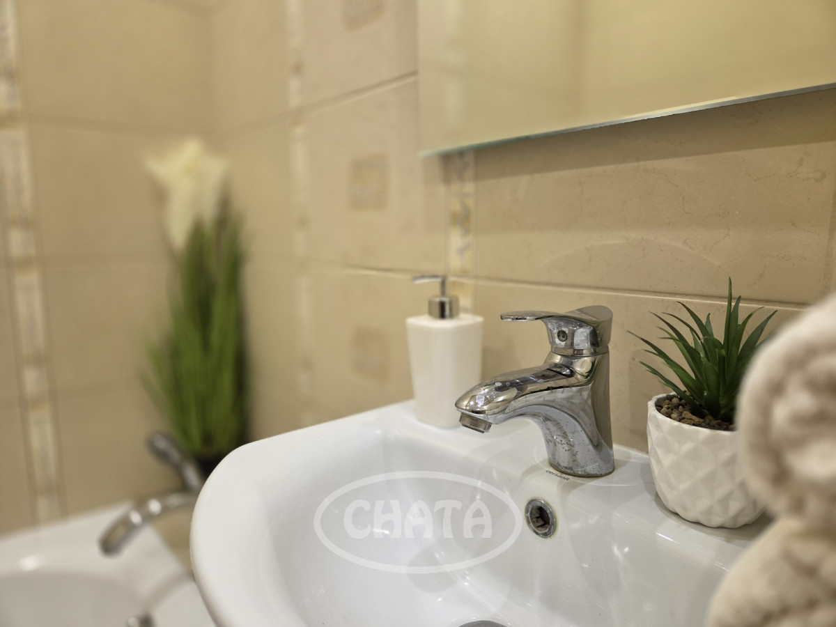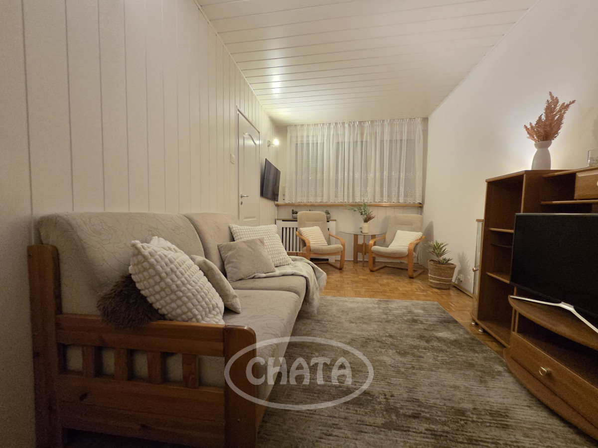 Mieszkanie umeblowane i wyposażone. W pokojach na podłodze dobrze zachowana mozaika. Z salonu wejście do jasnej, wyremontowanej kuchni z meblami oraz sprzętem AGD w zabudowie. Z sypialni wyjście na loggię. Łazienka w gustownych kaflach, z wanną. Okna PCV z roletami, ekspozycja południowa, co, w połączeniu z wysokim piętrem, sprawia, że mieszkanie jest bardzo jasne i przestronne.
