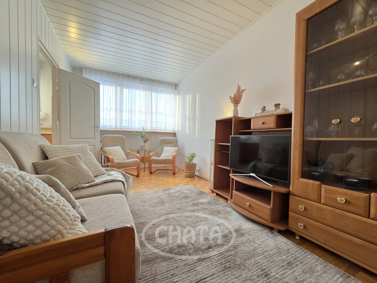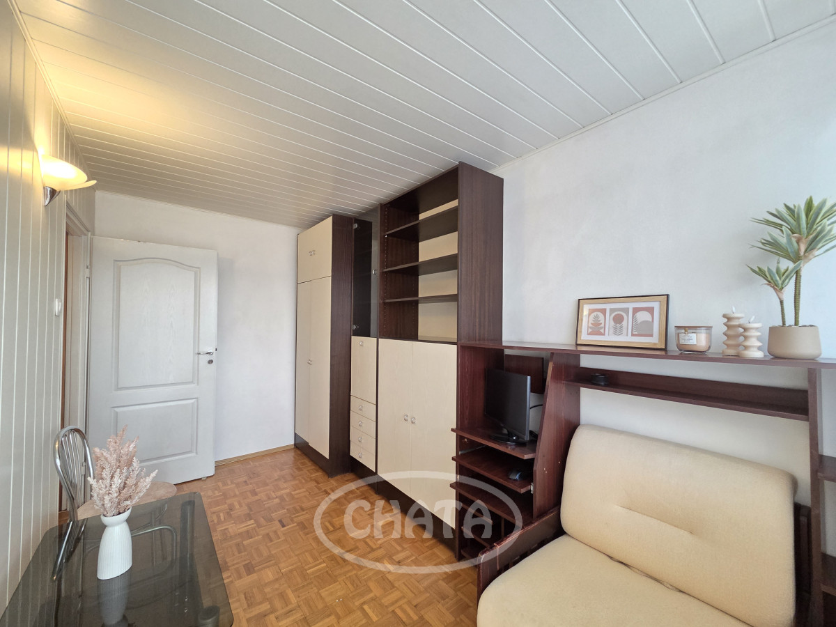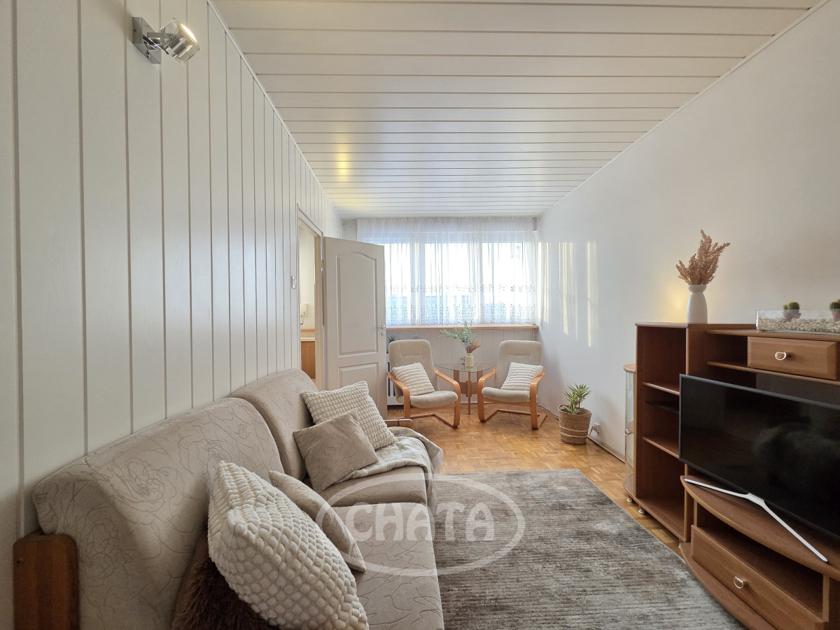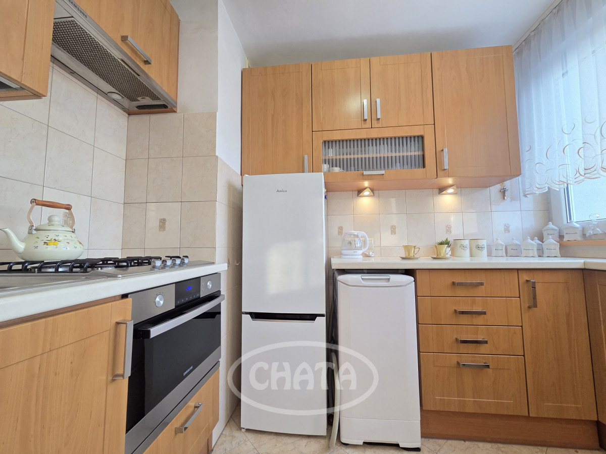 Mieszkanie umeblowane i wyposażone. W pokojach na podłodze dobrze zachowana mozaika. Z salonu wejście do jasnej, wyremontowanej kuchni z meblami oraz sprzętem AGD w zabudowie. Z sypialni wyjście na loggię. Łazienka w gustownych kaflach, z wanną. Okna PCV z roletami antywłamaniowymi, ekspozycja południowa, co, w połączeniu z wysokim piętrem, sprawia, że mieszkanie jest bardzo jasne i przestronne.