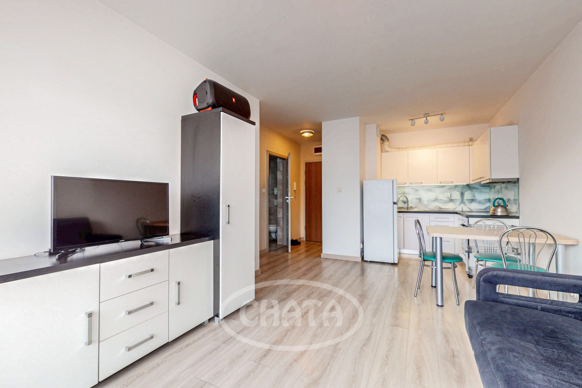 It measures 38.70 m² and consists of a living room with a kitchenette, a bedroom, a bathroom and a hallway. A bicycle/stroller room is also available for residents. Under the building there are many parking spaces.