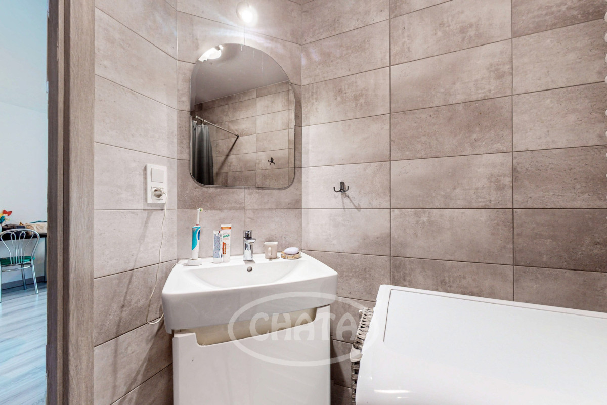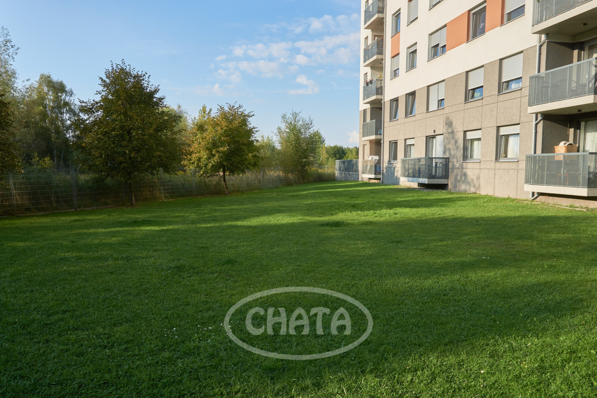 The building, completed in 2016, still looks fresh and modern thanks to the use of high-quality materials. It is located on the edge of the estate, adjacent to the green areas of AWL. The apartment windows overlook a well-kept lawn and trees in front of the building, and nearby there is a pond and a playground.