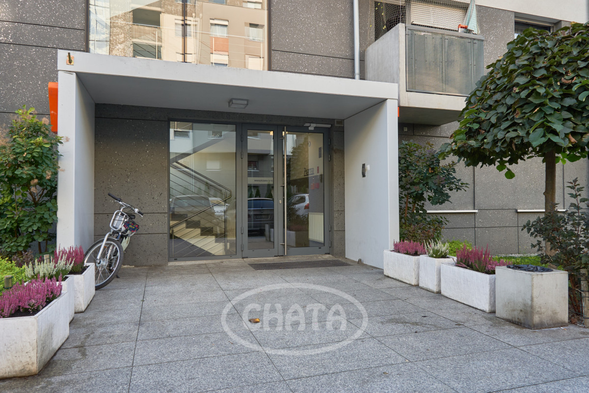 Budynek wybudowany w 2016 roku wciąż wygląda świeżo i nowocześnie dzięki zastosowaniu wysokiej jakości materiałów. Znajduje się na skraju osiedla i przylega do terenów zielonych AWL. Okna mieszkania wychodzą na zadbany trawnik i drzewa przed budynkiem, a obok mieści się oczko wodne i plac zabaw.