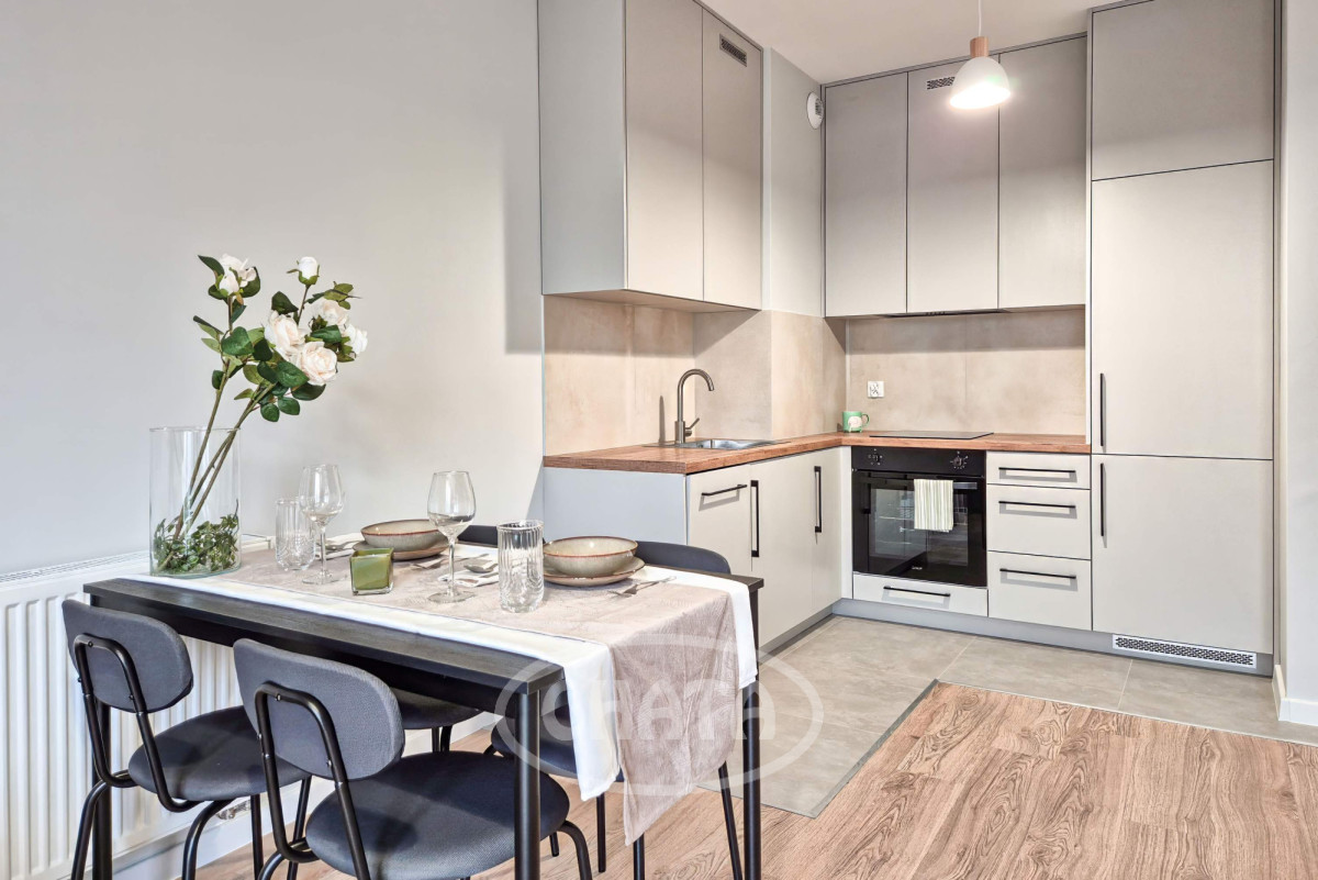 Mieszkanie słoneczne, starannie wykończone. Kuchnia w pełni umeblowana i wyposażone w dobrej jakości sprzęt AGD. Łazienka z kabiną prysznicową,pralka. Pokoje umeblowane jak na zdjęciach.