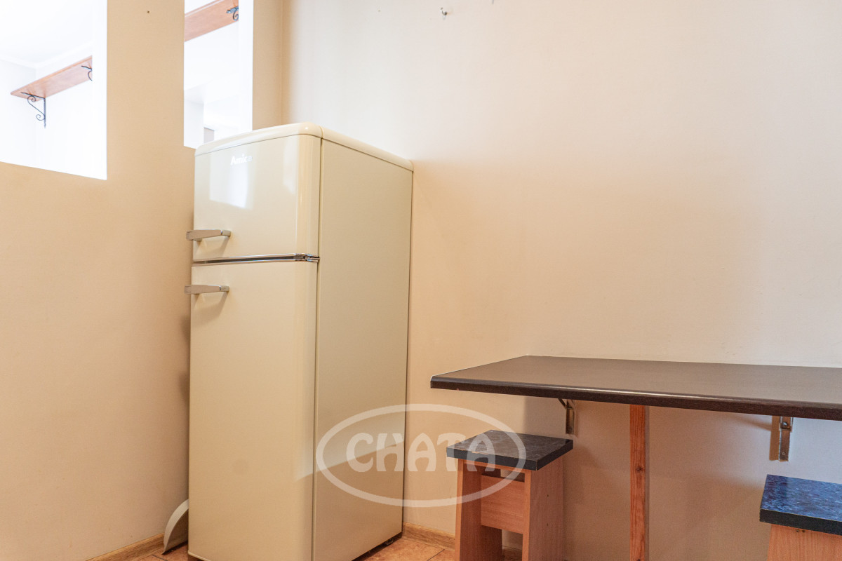 The apartment consists of two rooms, a separate kitchen, a bathroom, and a hallway. The living room is a walkthrough, which makes the flat perfect for a couple. There is also a basement available to the tenant.
