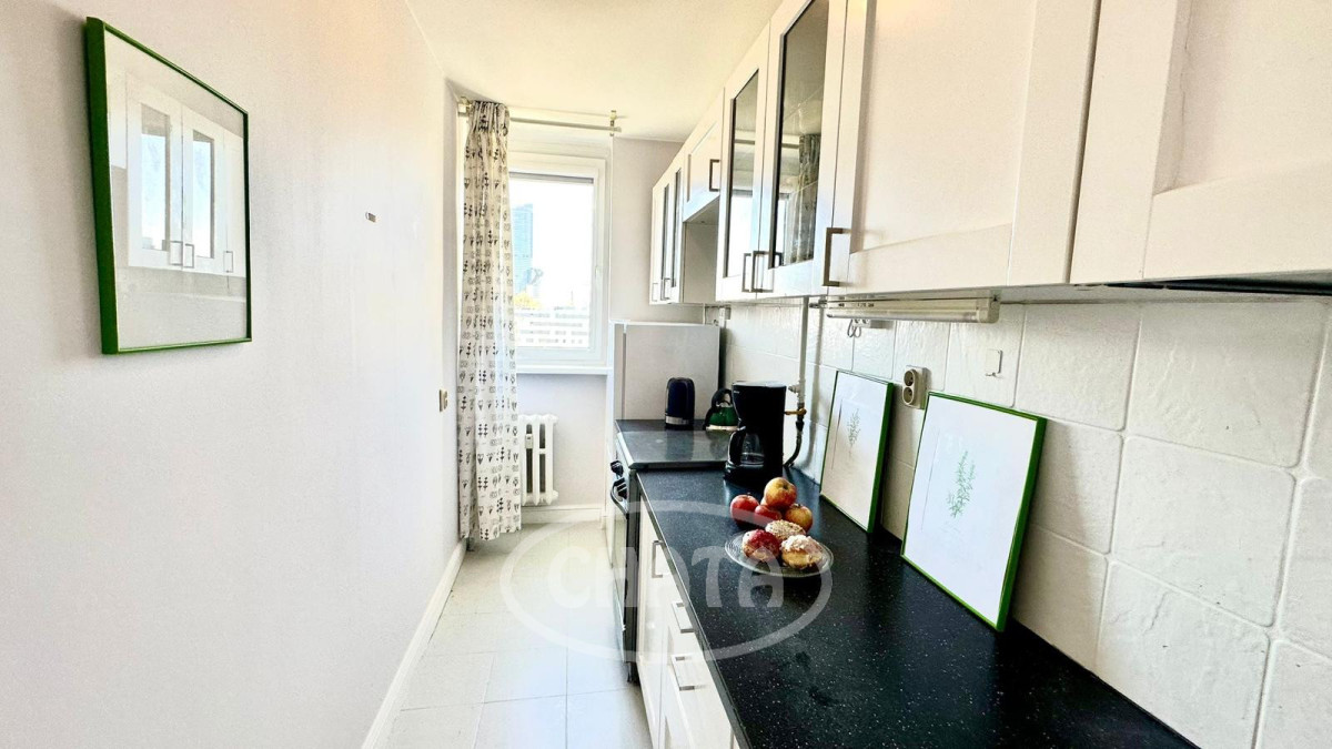 The kitchen is equipped with a large refrigerator, stove with oven, and dishwasher. The interior is very sunny and well maintained, and the neighborhood is quiet.