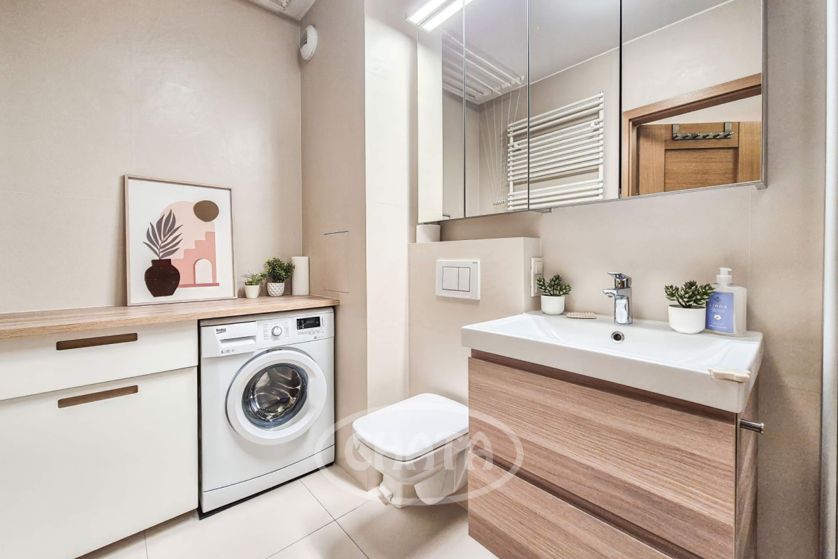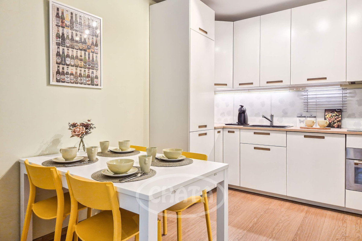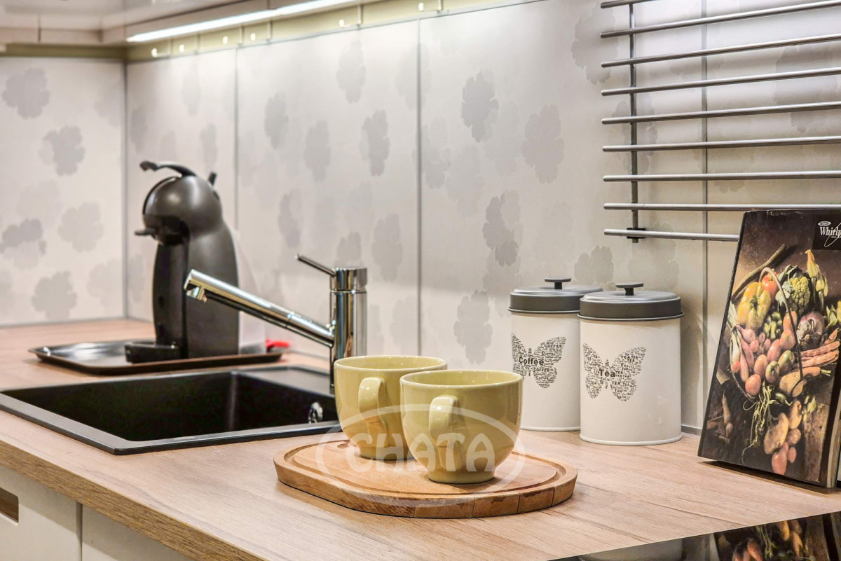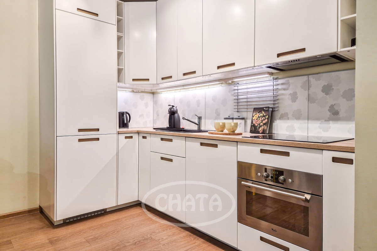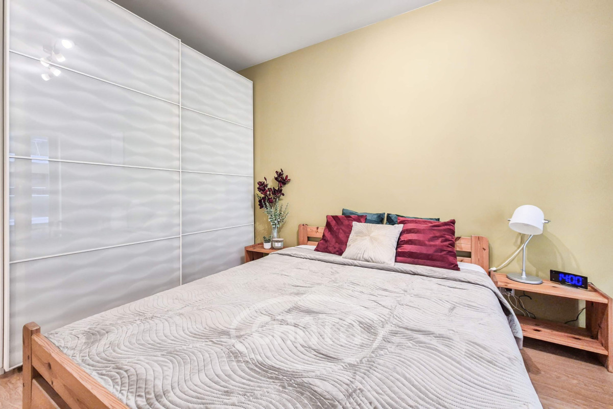 The apartment is fully equipped with kitchen appliances, tableware, a hair dryer, an iron, a vacuum cleaner, a toaster, a sandwich maker, etc. Additionally, the tenant may use the treadmill visible in the photos and the RTV set: smart TV and home theater system. The bedroom and hallway are fitted with very spacious wardrobes.