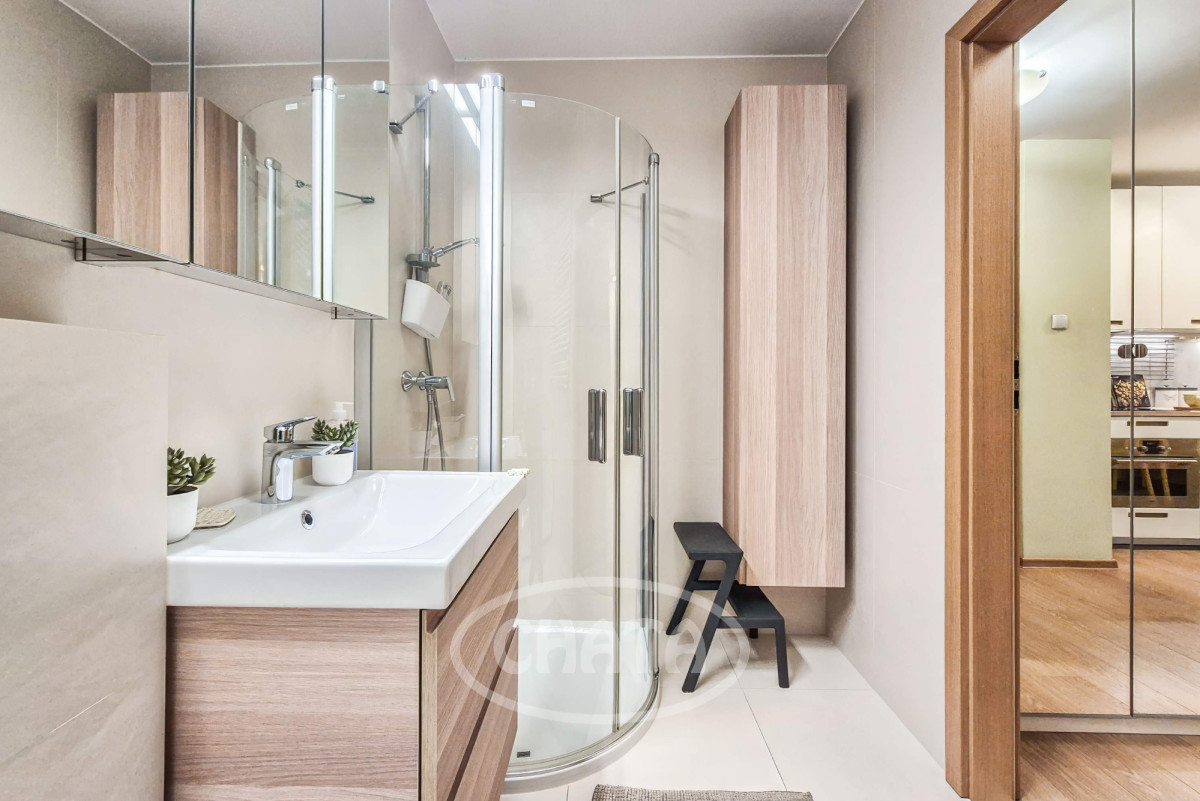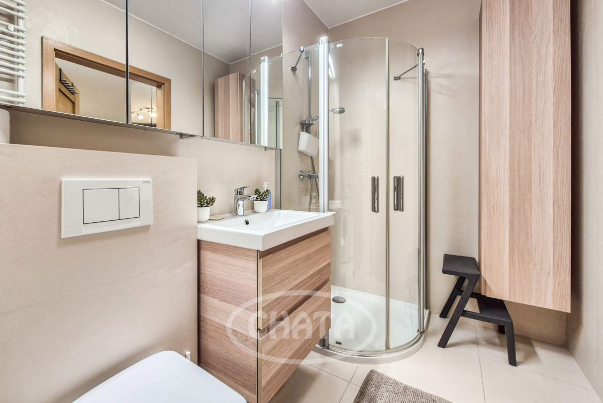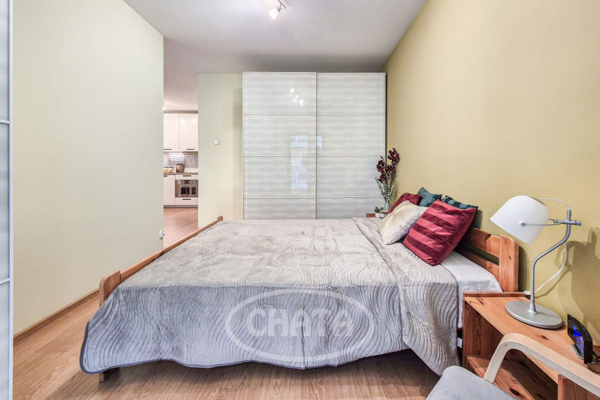 The apartment consists of a spacious living room with access to the balcony, a fully equipped kitchen, a bedroom, a bathroom with a shower, and a hallway. A convenient parking space on level 0 of the building is available for the tenant. The interior is very well-maintained, clean, finished with high-quality materials, and furnished with comfortable furniture.