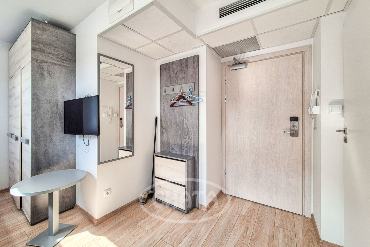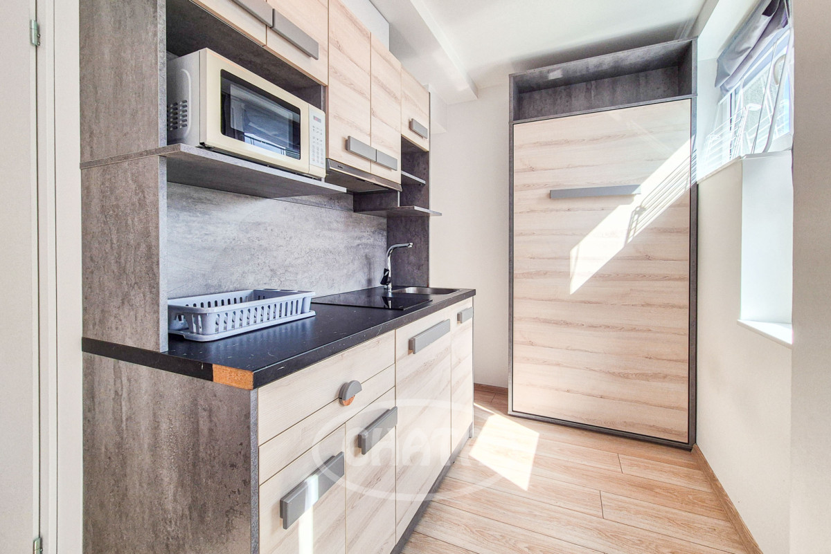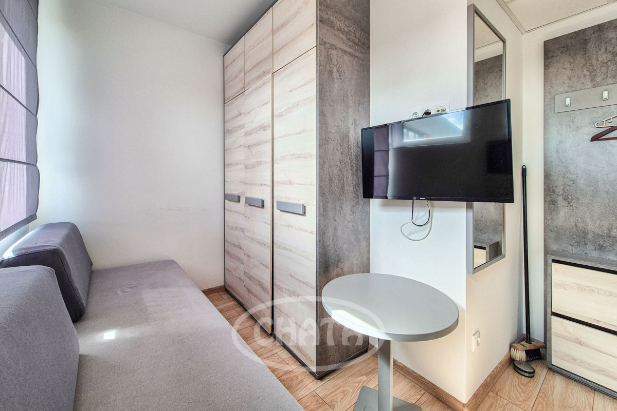 Lokal znajduje się na 8 piętrze.Pokój połączony z aneksem kuchennym z łazienką.Wyposażony i umeblowany jak na zdjęciach.Internet w cenie najmu.