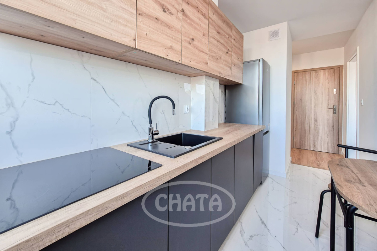 Kuchnia umeblowana i wyposażona, jasna, z oknem (lodówka, zmywarka, płyta grzewcza).