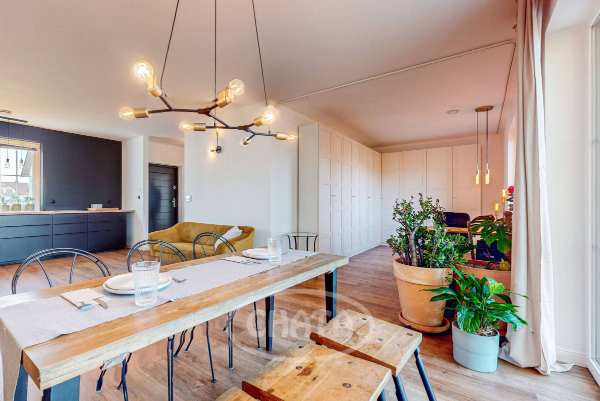 - salon z otwartą kuchnią i otwartą przestrzenią do pracy,