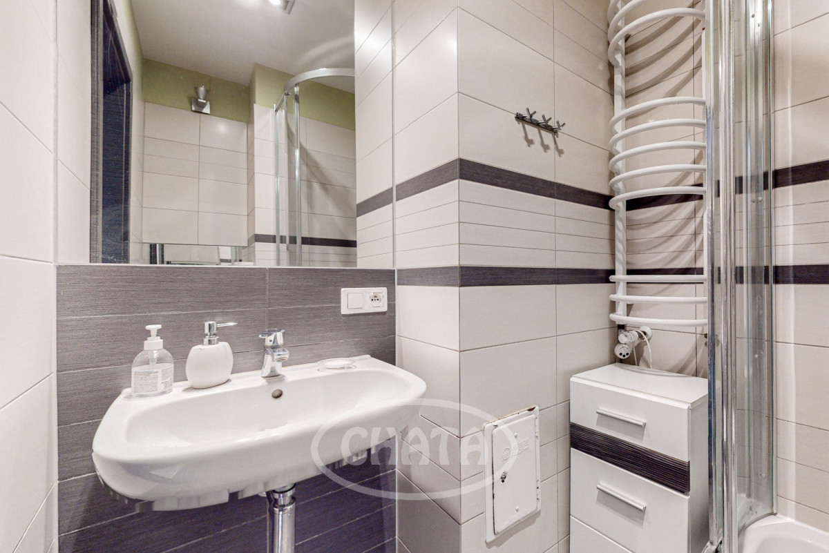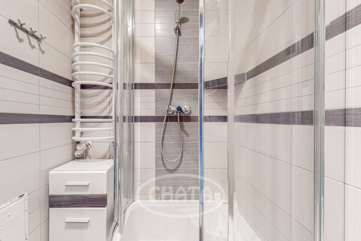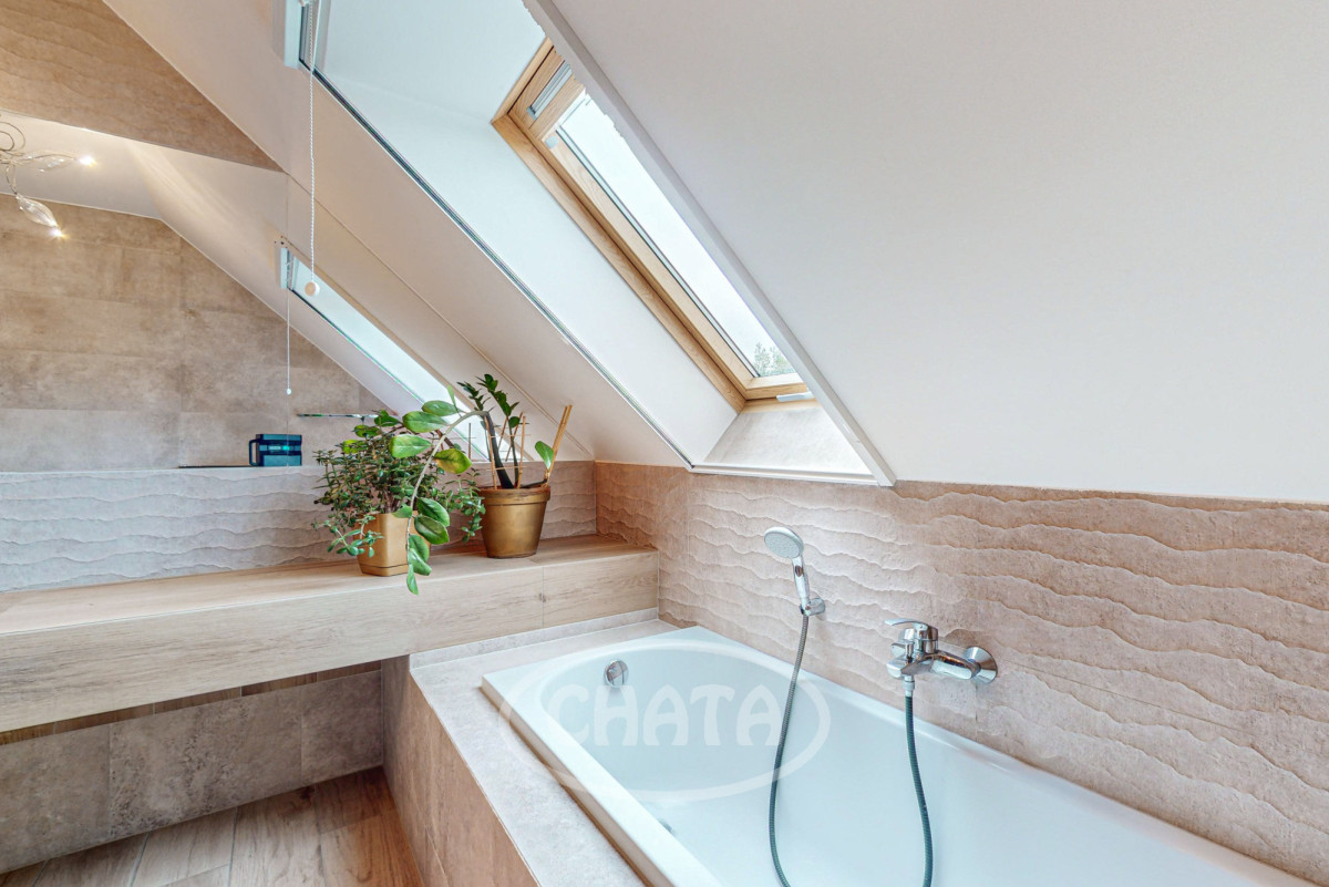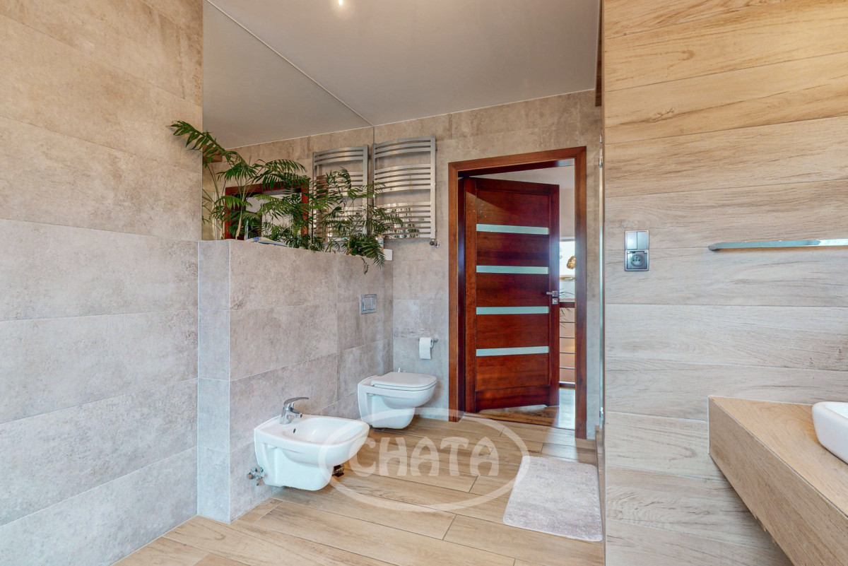 - stylowa łazienka z wanną oraz dużą kabiną prysznicową