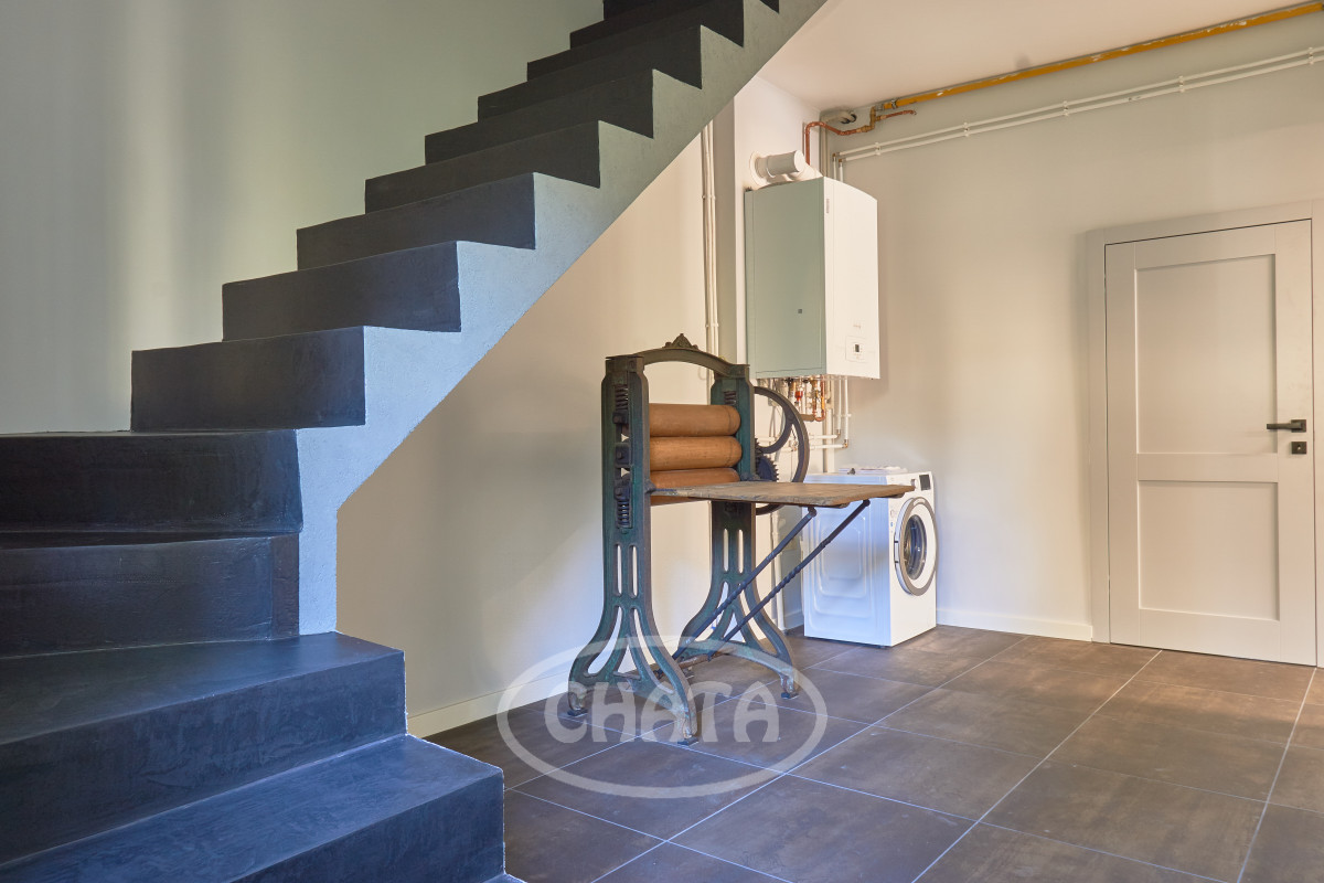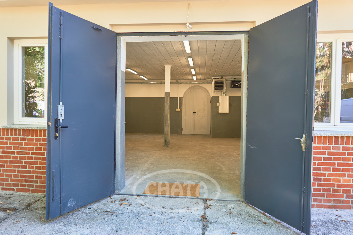 On the ground floor, there is a large hall of 67.4 m² with a height of 2.90 m, which can easily serve as a warehouse, workshop, or studio. The floor is concrete, and the lighting is fluorescent.