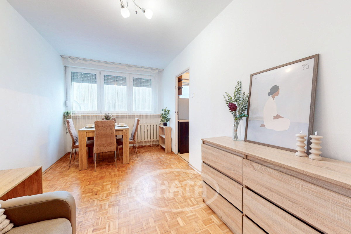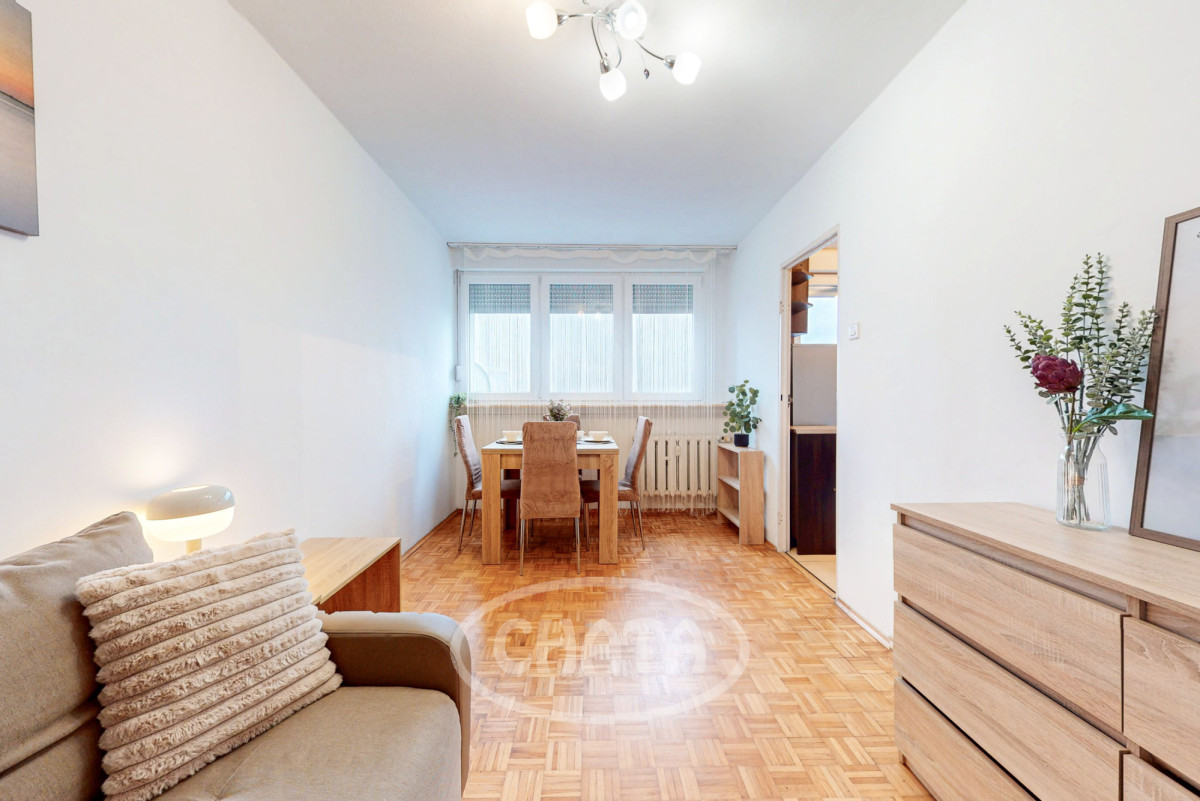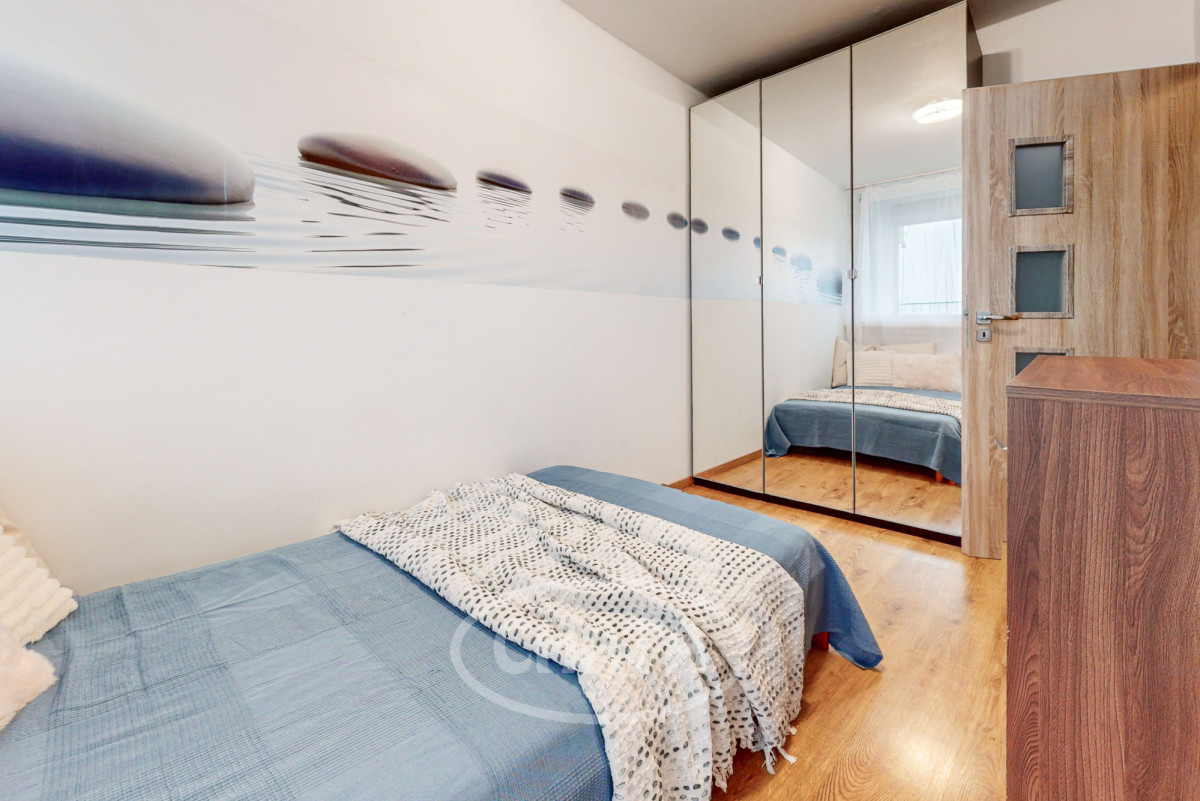 Mieszkanie jasne, ciepłe i przytulnie urządzone, składa się z sypialni z wyjściem na balkon, pokoju, kuchni, łazienki i przedpokoju. Do mieszkania przynależy także piwnica.