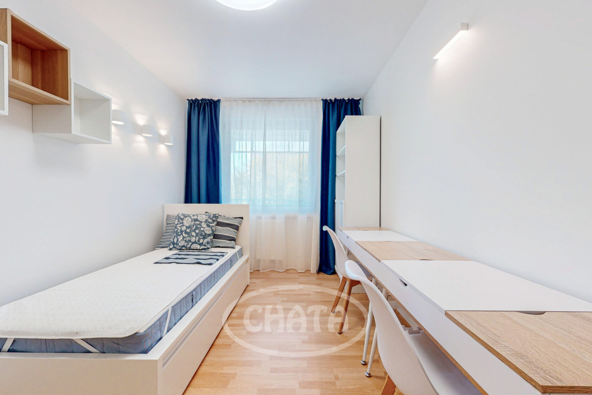 - 2 pokoi wyposażonych w łóżka z materacami, szafy i duże biurka,