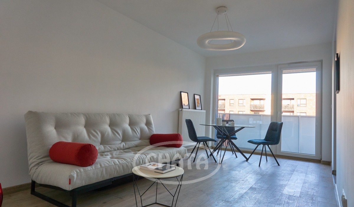 Spacious, modern apartment for rent with a balcony and parking space in a quiet building on Małopanewska Street. Available from November 1st, 2025.